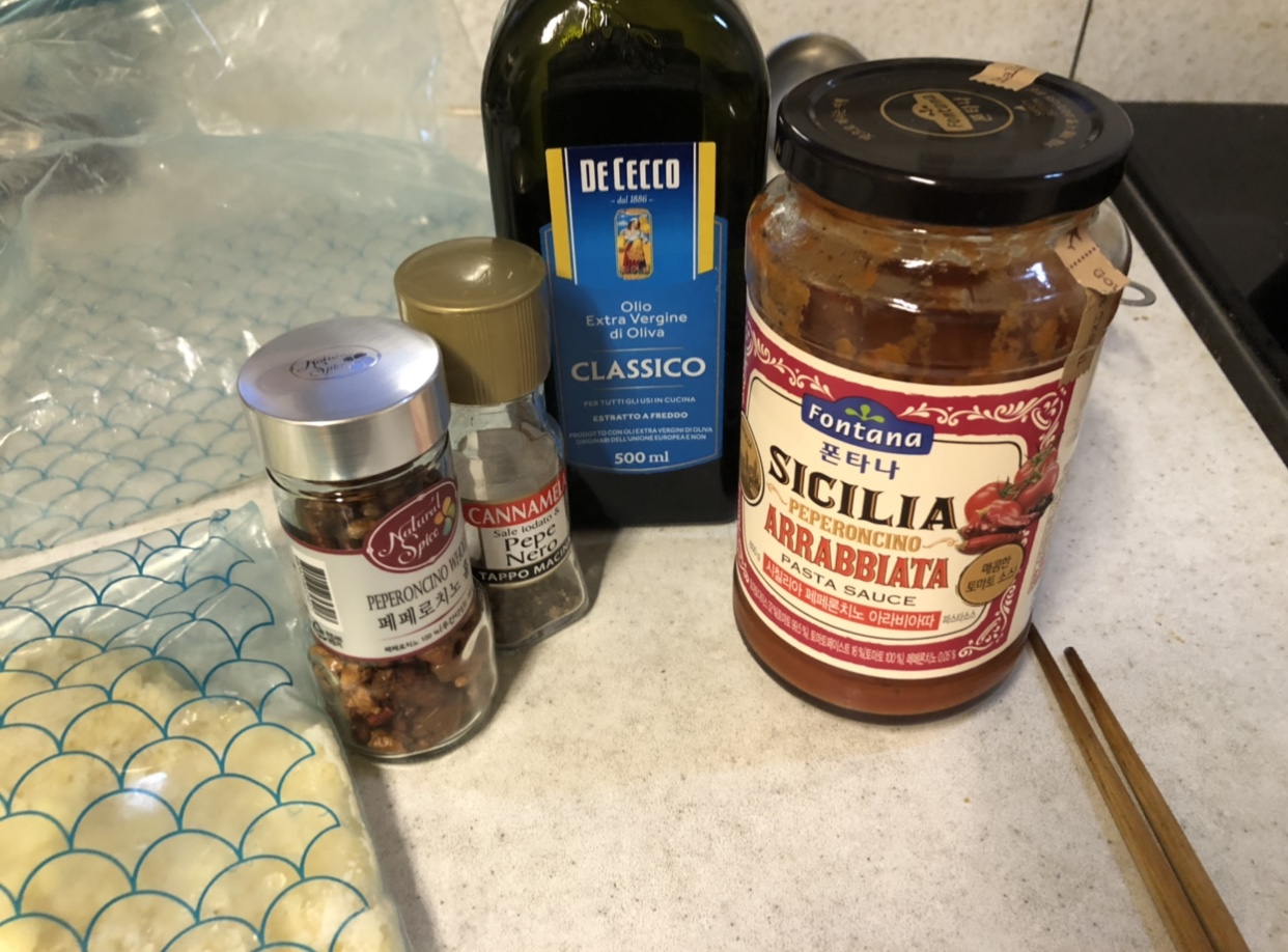 올리브유는 데체코, 토마토소스는 폰타나를 사용했습니다.
