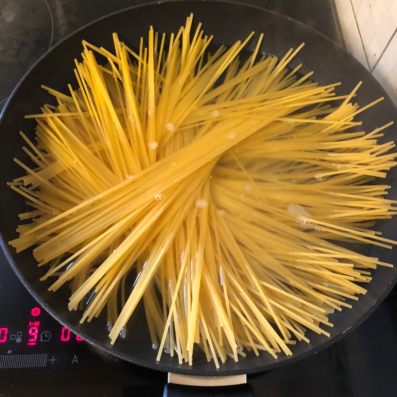 파스타면 : 사실 쉬림프 스캠피 링귀니 파스타에서 '링귀니'는 두껍고 납작한 파스타면을 뜻합니다. 하지만 동네 마트에 스파게티면만 파는 관계로 저는 스파게티면을 사용했는데요, 결과적으로 스파게티면을 사용한게 잘한 선택이었습니다! 링귀니로 만들어도 맛있지만 그보다 얇은 스파게티면으로 하니 더 촉촉하고 부드러웠습니다. 한 팩에 500g으로 5인분이니 4/5만 사용했습니다.