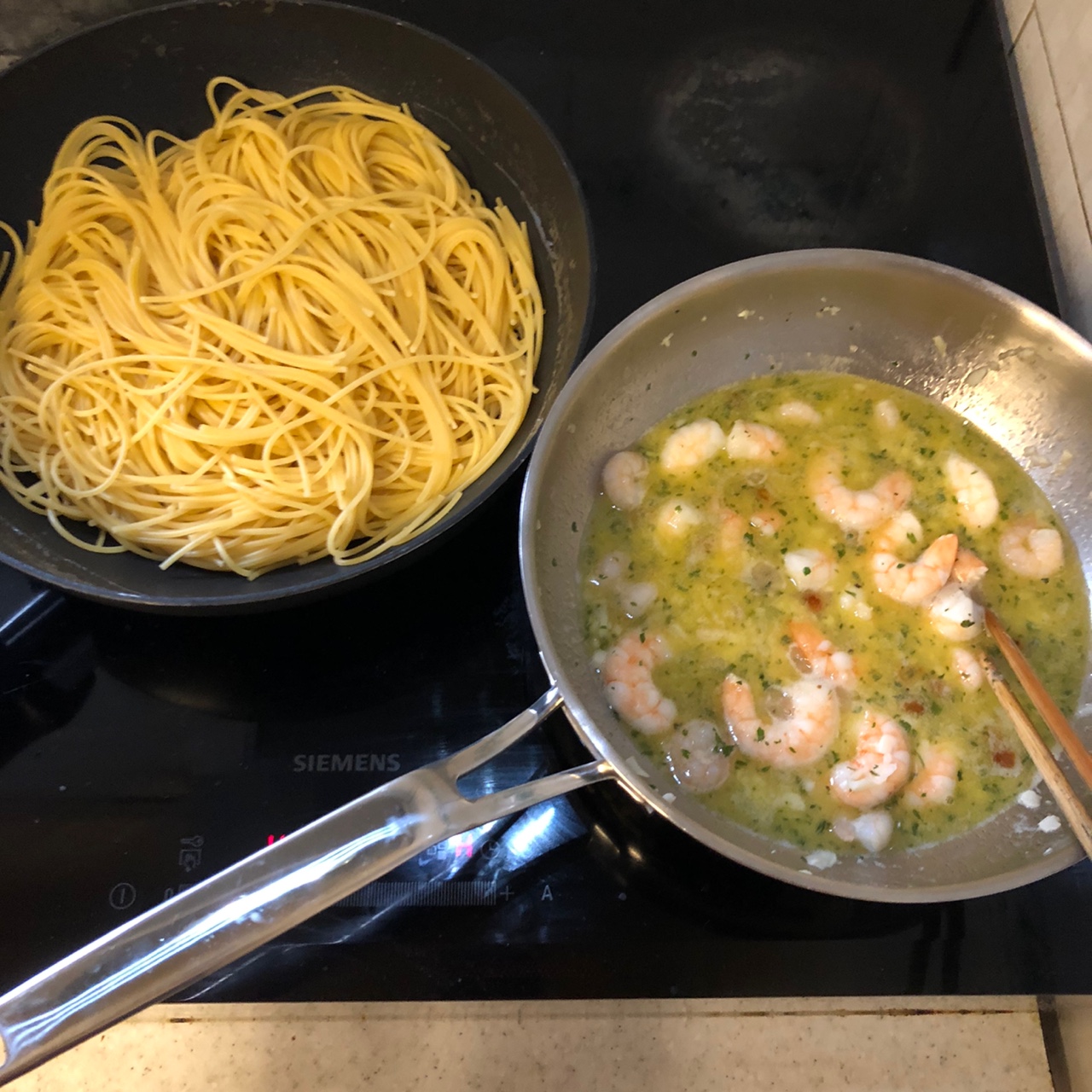 알리오올리오 재료에서 추가되는 것은 새우, 레몬, 버터, 화이트와인정도니까요.
