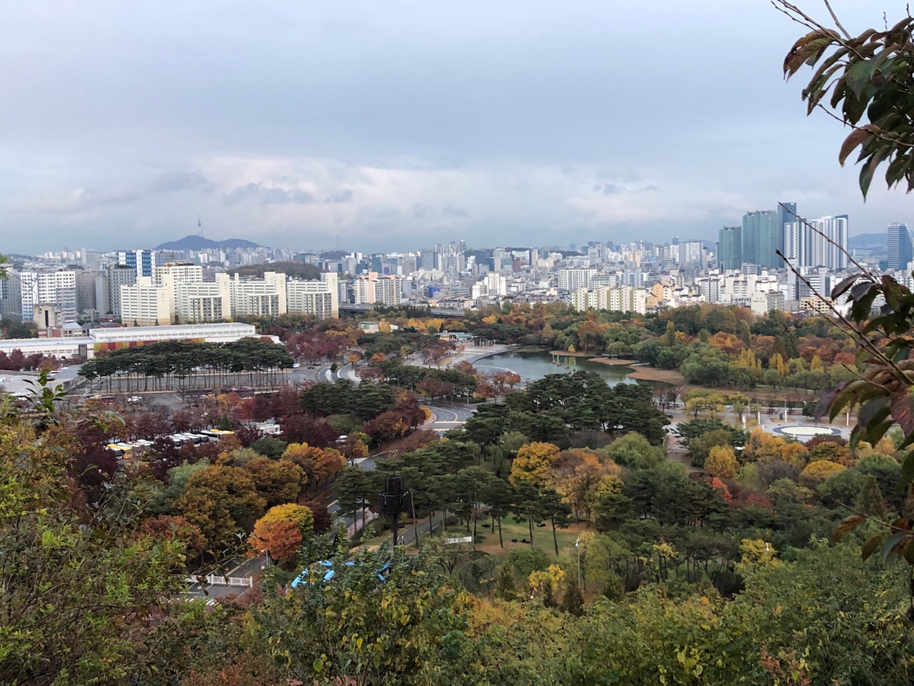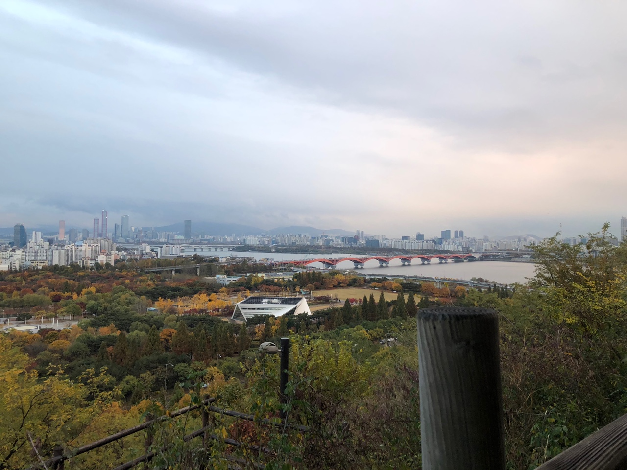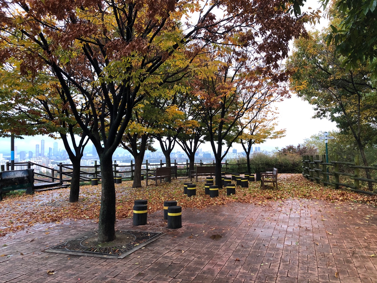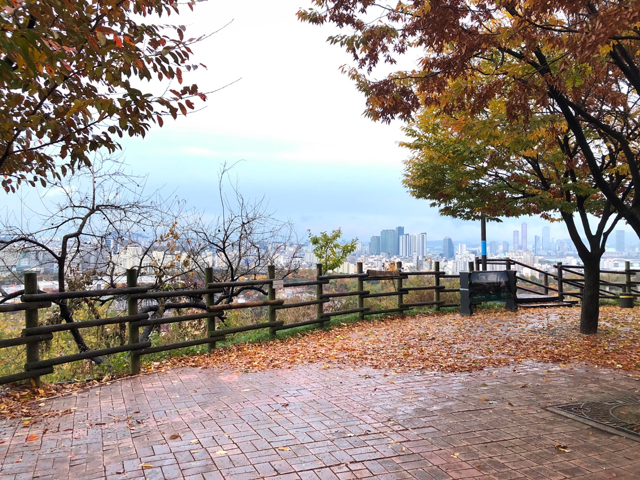 길을 따라 걷다보면 이렇게 서울의 전경이 촥 펼쳐집니다. 알록달록한 나무들덕에 평화의 공원이 정말 예뻤는데요, 비가 좀 왔는데도 아직 잎이 다 떨어지지 않아서 다행이었습니다.
