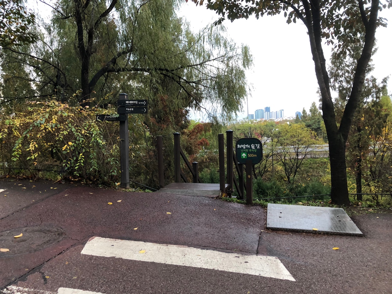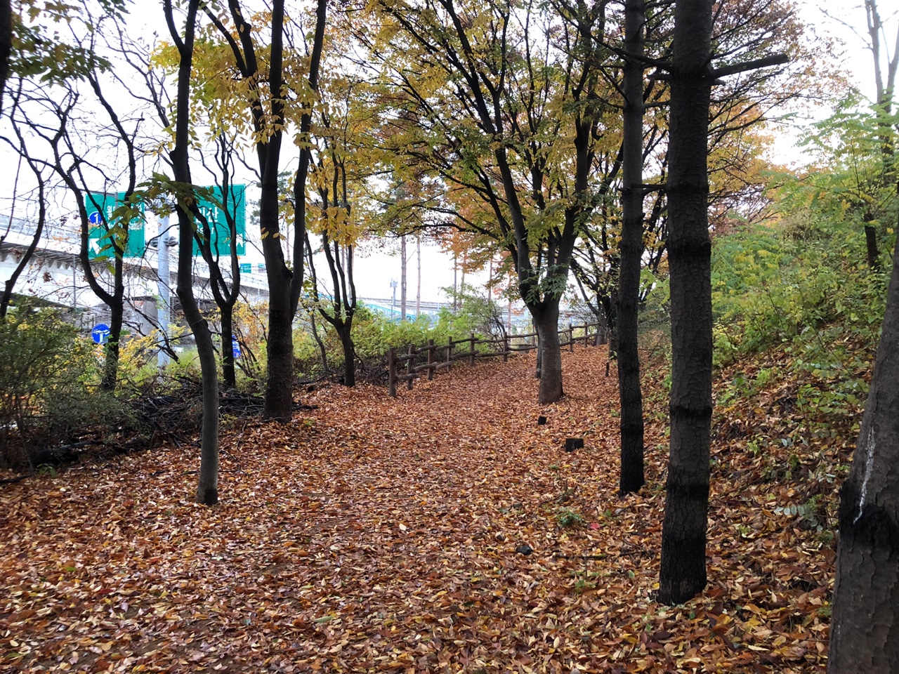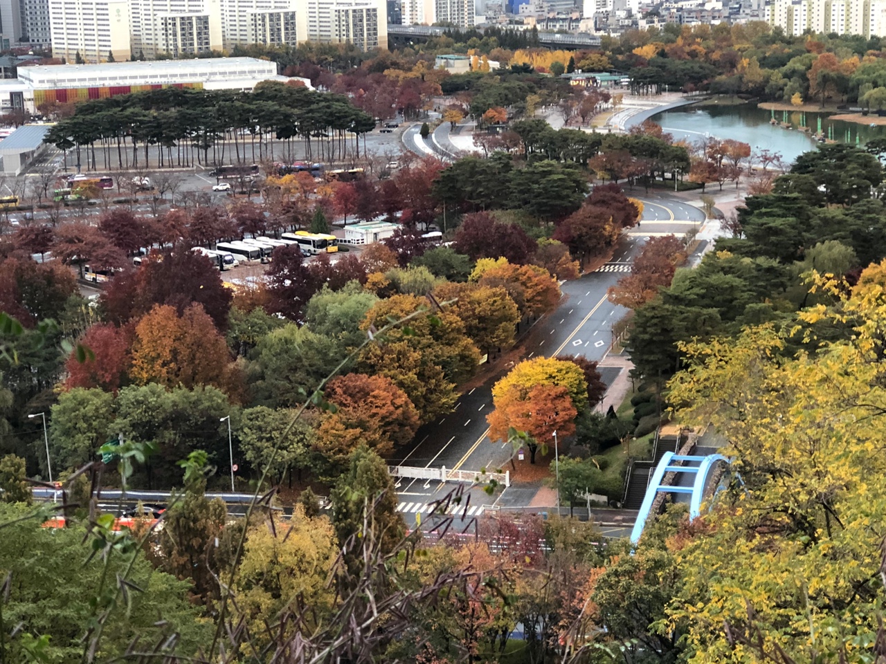 길을 따라 걷다보면 이렇게 서울의 전경이 촥 펼쳐집니다. 알록달록한 나무들덕에 평화의 공원이 정말 예뻤는데요, 비가 좀 왔는데도 아직 잎이 다 떨어지지 않아서 다행이었습니다.
