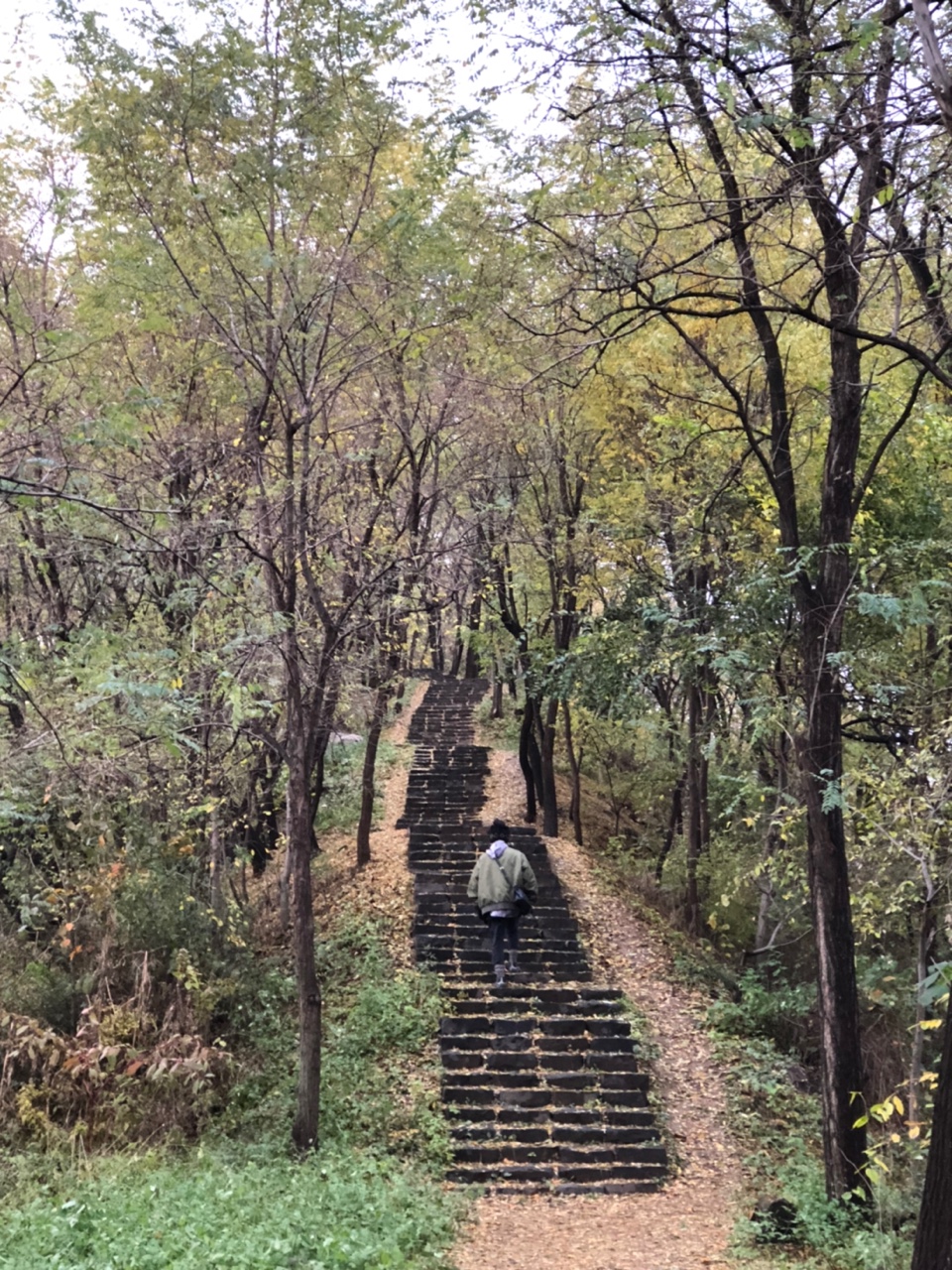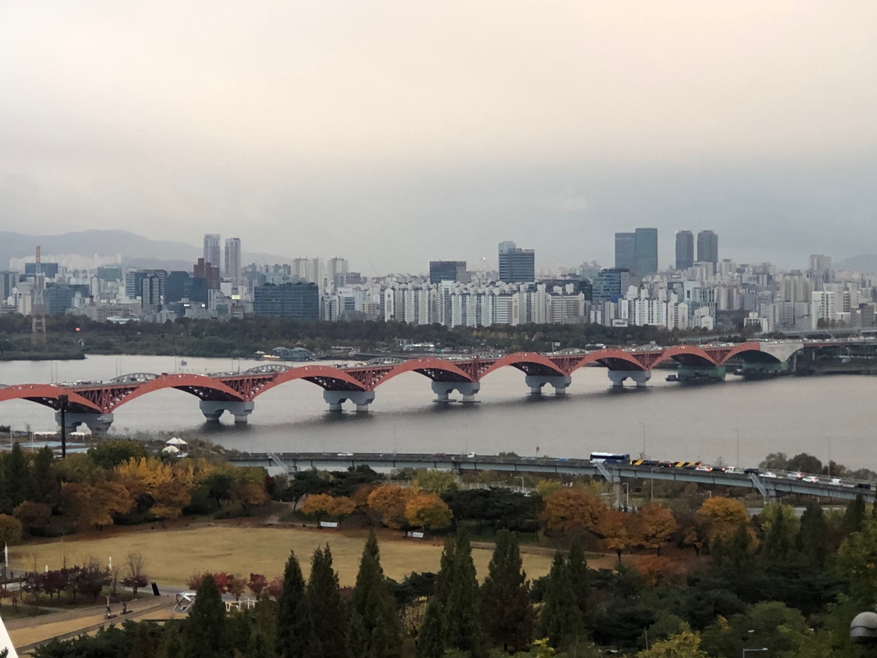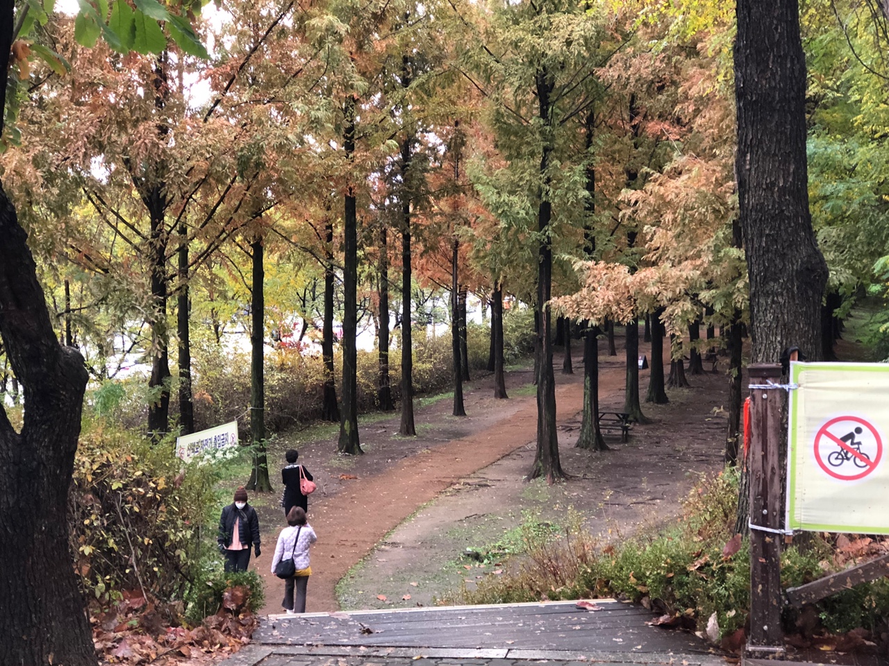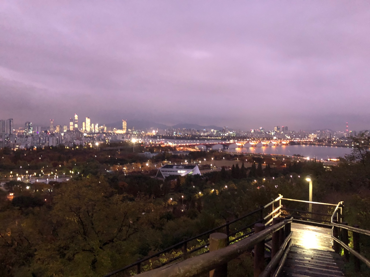 길을 따라 걷다보면 이렇게 서울의 전경이 촥 펼쳐집니다. 알록달록한 나무들덕에 평화의 공원이 정말 예뻤는데요, 비가 좀 왔는데도 아직 잎이 다 떨어지지 않아서 다행이었습니다.