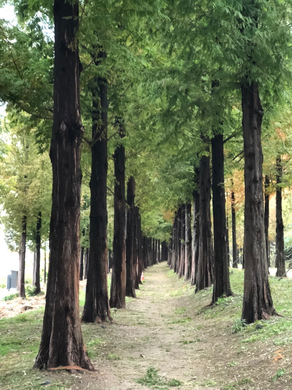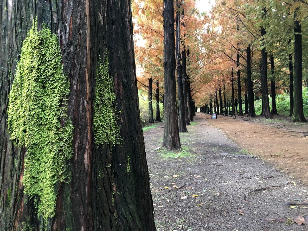 구름다리 우측으로 이렇게 메타세콰이어 숲길로 들어갈 수 있는 통로가 나옵니다~!
