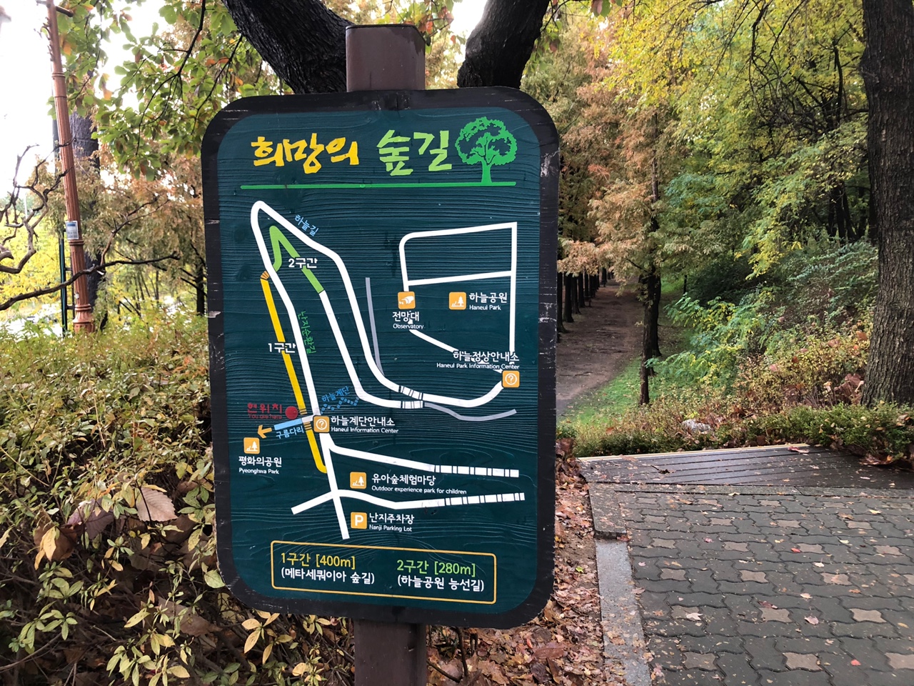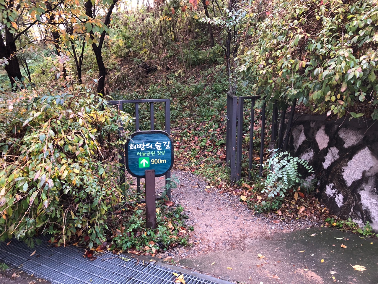 이렇게 하늘공원 정상으로 가는 숲길이 나옵니다! 지금껏 하늘공원은 하늘계단을 통해 올라가기만했었는데 어제는 메타세콰이어길 덕분에 이렇게 새로운 루트를 발견하게 된거랍니다.