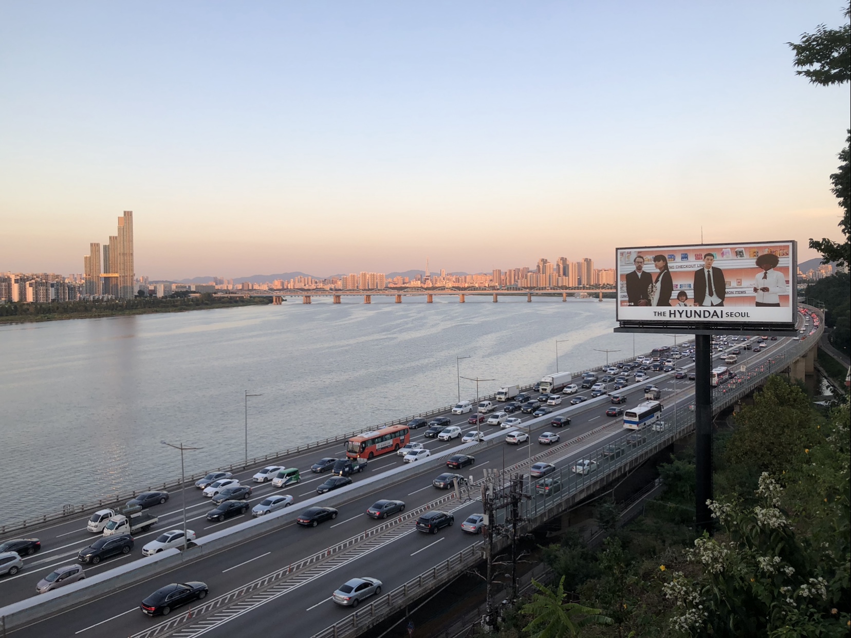 더현대서울 빌보드 광고의 감성과 노을지는 한강의 풍경이 매우 잘어울리네요.