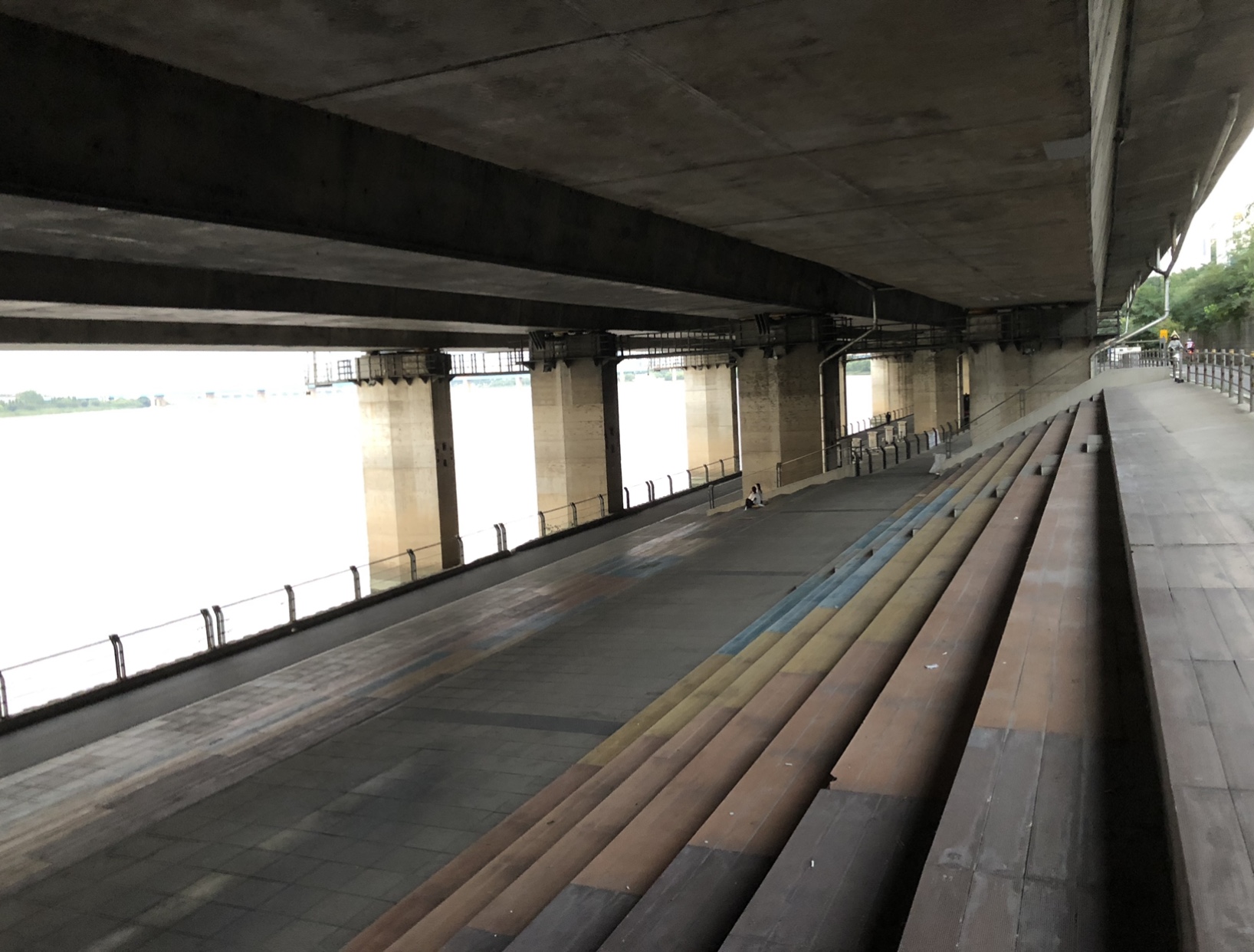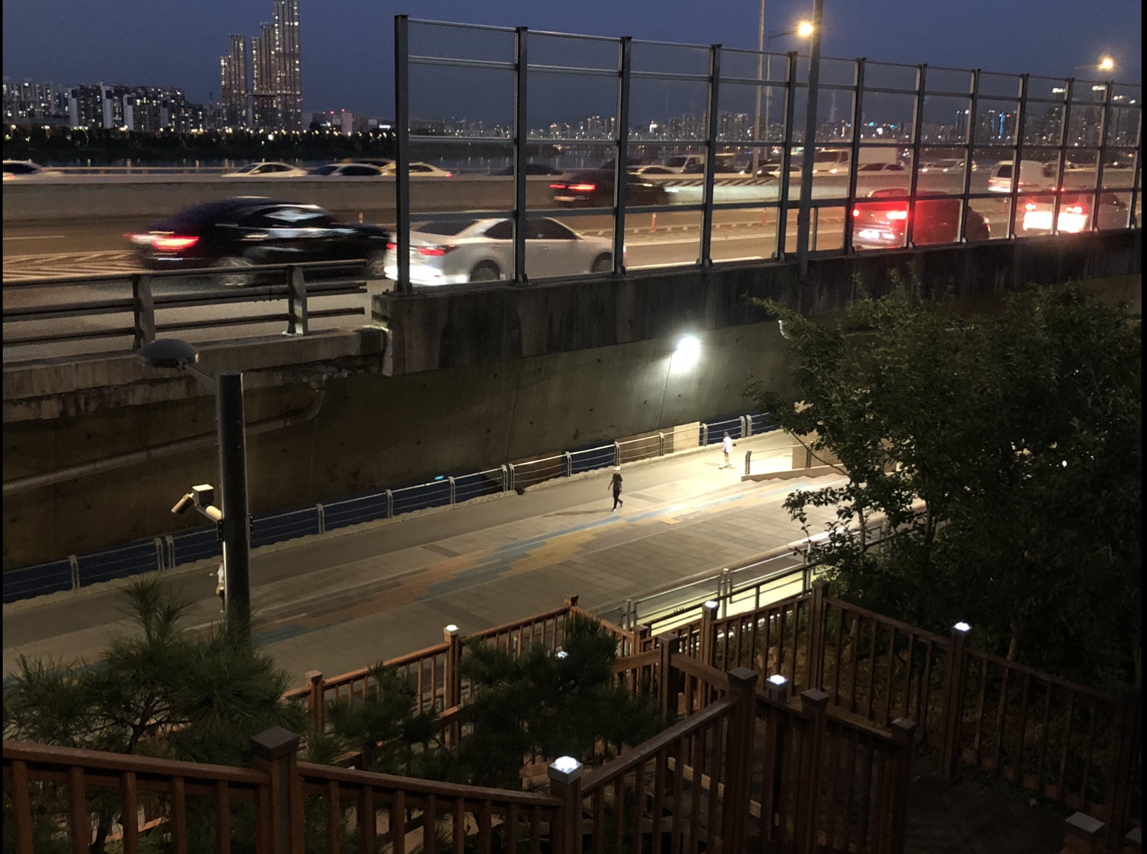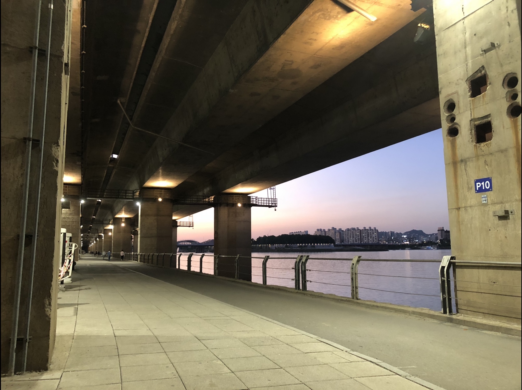 올림픽대로 밑으로 한강변을 따라 난 보행로로 이어집니다.