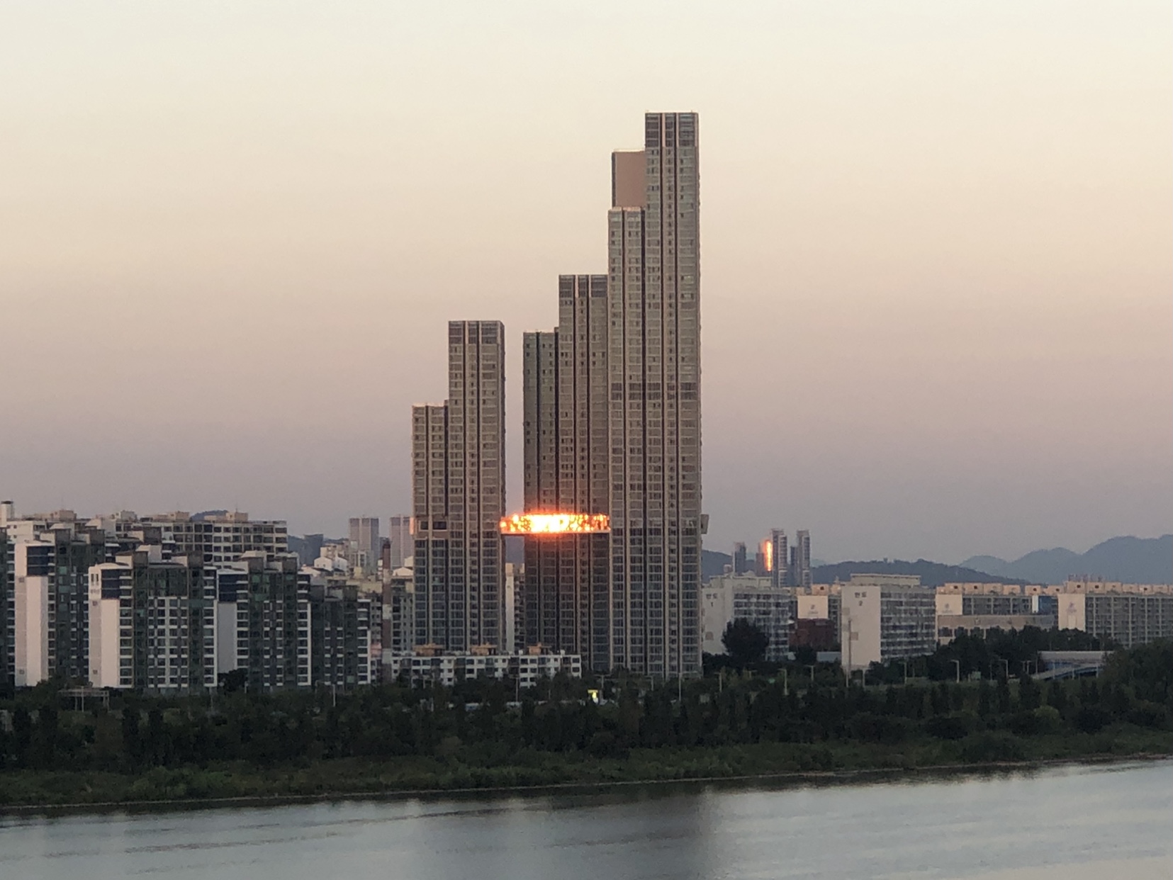 저기 멀리 지는 해가 비쳐 이글이글 불타오르는 듯한 창이 정말 시선강탈이었는데 너무 이쁘더라고요.