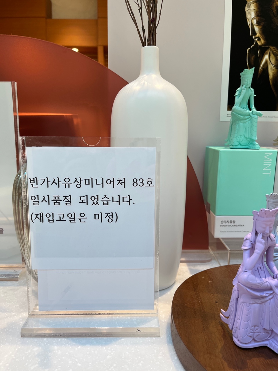 품절 안내판. 반가사유상 미니어처 83호는 어떤 것일까 정말 궁금해지는걸요~