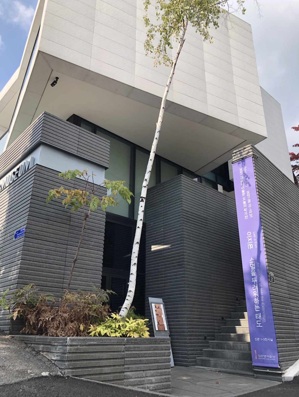 미술관 건물이 독특하고 예뻐서 전시외에도 건축물을 구경하는 재미가 있답니다. 외관도 그렇지만 특히 전시장 내부구조가 독특하고 예뻤어요. 바깥에 심어진 소나무도 잘 어울리니 평창동 느낌이 뿜뿜하더군요.