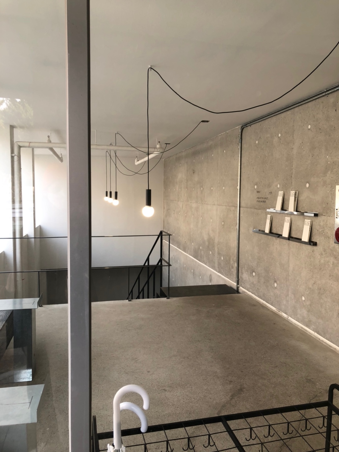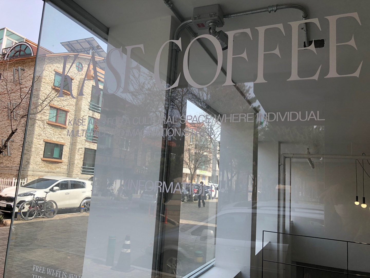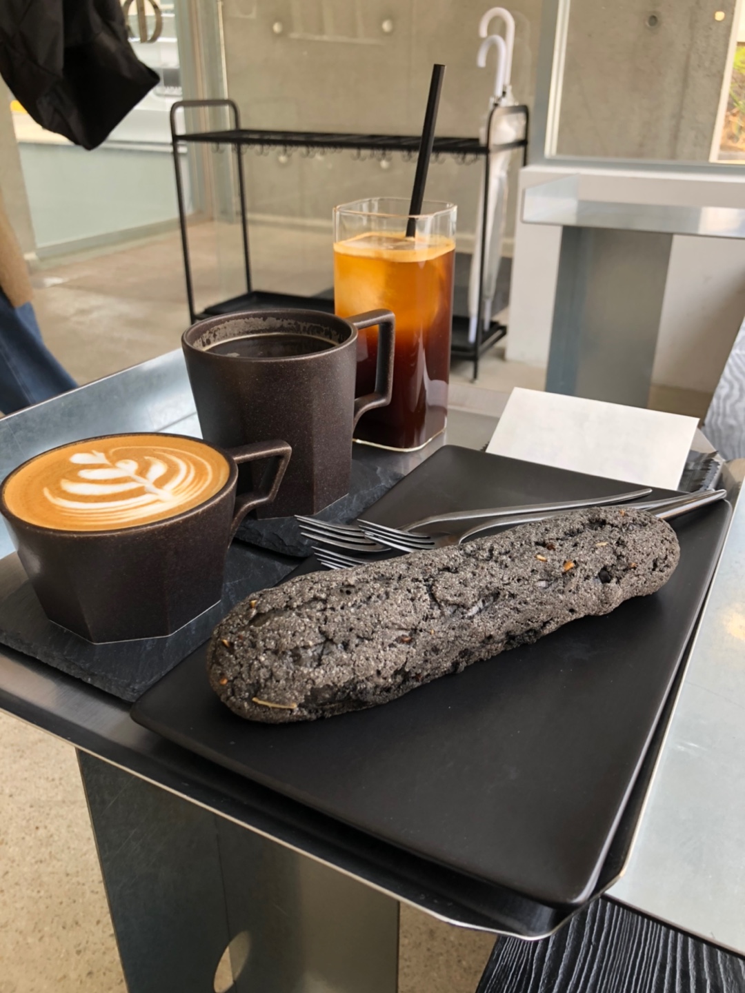 그래서 지하인 카페층의 천장은 높고 작은 야외 정원과 연결되는 구조가 만들어져 (지하에서 뚫린 창밖 정원 윗편으로 1층에 주차한 차가 보임) 건축에 굉장히 신경을 많이 쓴 공간같다는 생각이 들었습니다. 사진은 못찍었지만 커피 제조공간 카운터가 깔끔하니 예쁘더라고요.