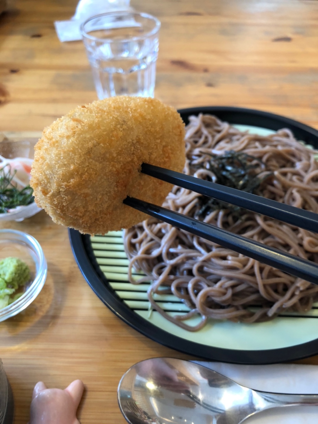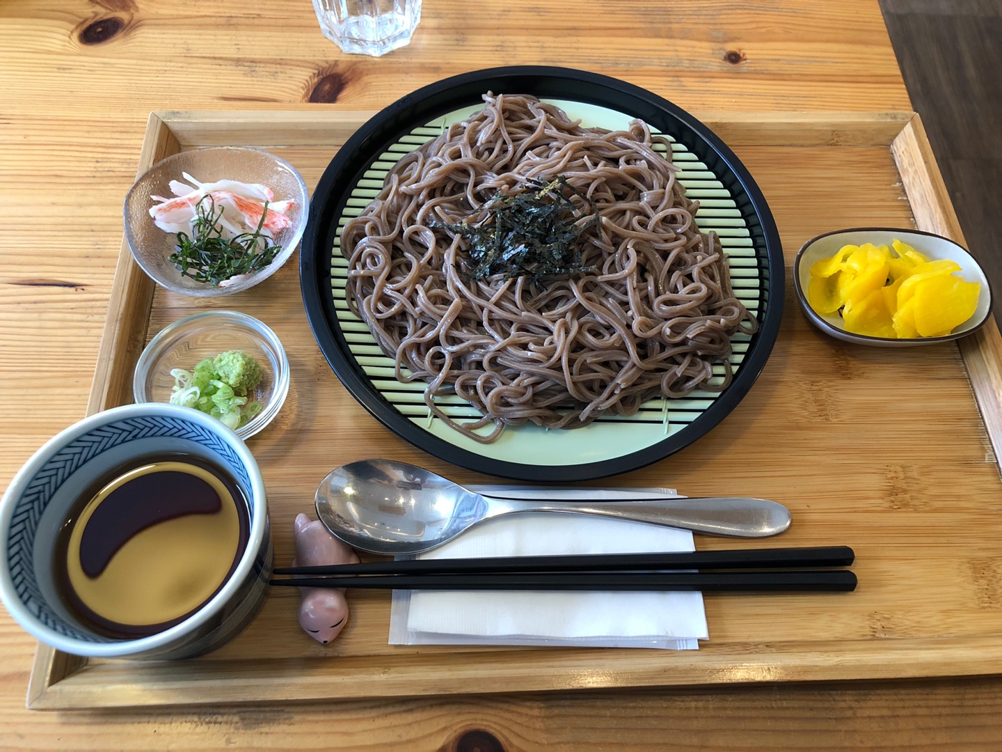 안에는 양념된 다시마가 들어있었고 건강하면서 소박하고 아기자기한 맛이 아, 이런게 일본 가정식이구나를 느끼게 해줬습니다. 소바도 와사비를 풀어 맛있게 싹 비웠답니다.