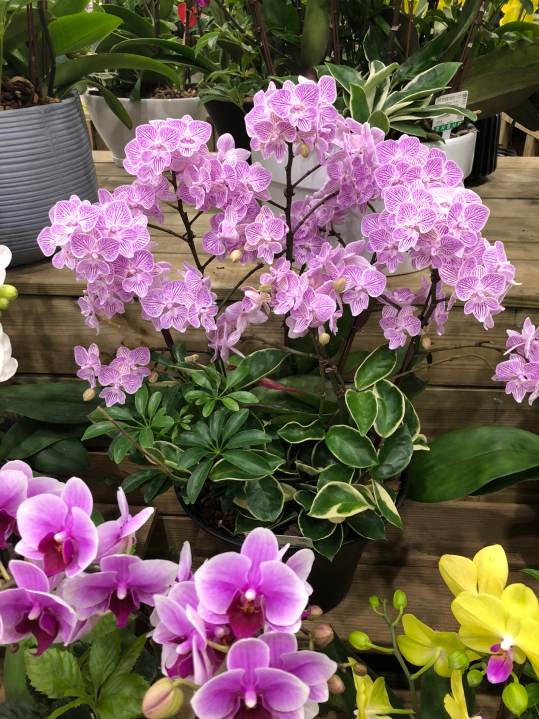 저는 개인적으로 양란과 다른 종류의 관엽식물을 합식하는 것의 이유를 잘 모르겠습니다. 좀 촌스러워보입니다.