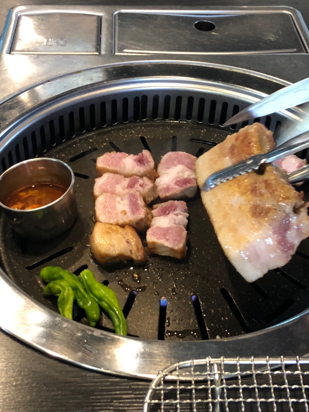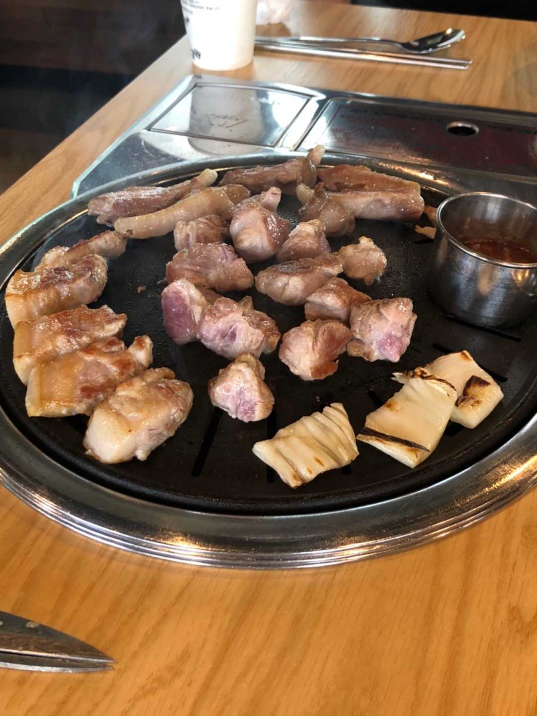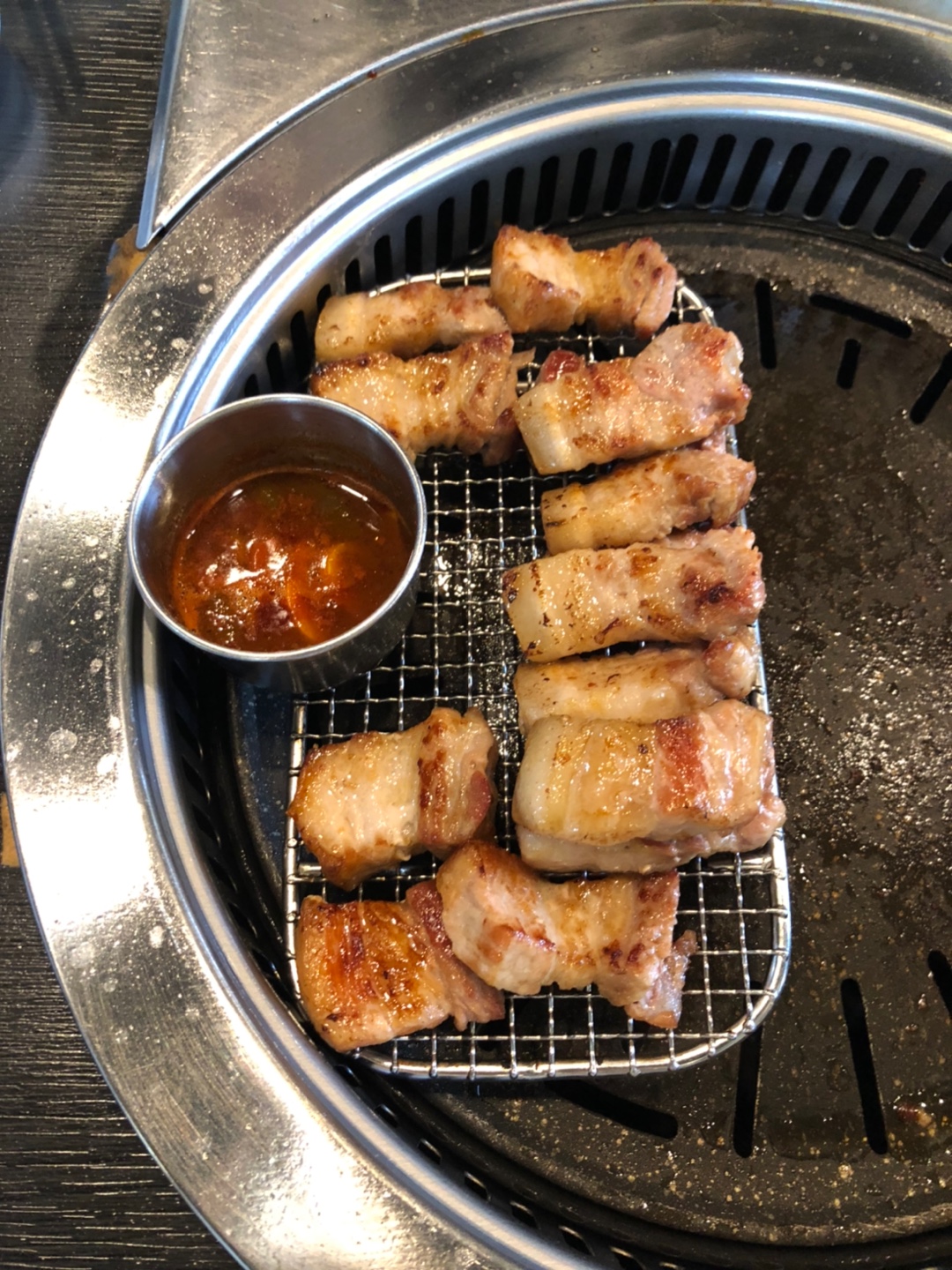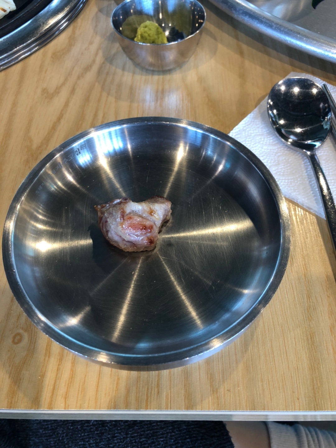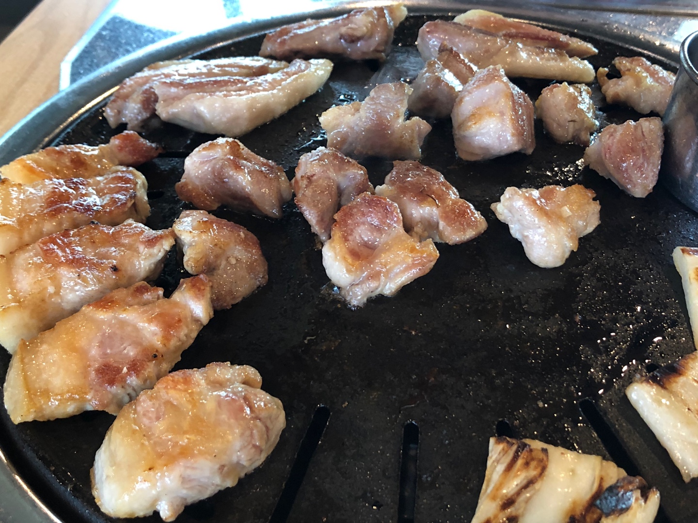 이렇게 살짝 덜 익힌 듯하게 직원님이 익혀서 한 점씩 딱 앞에 놔주시는데.. 이게 꿀맛입니다요.