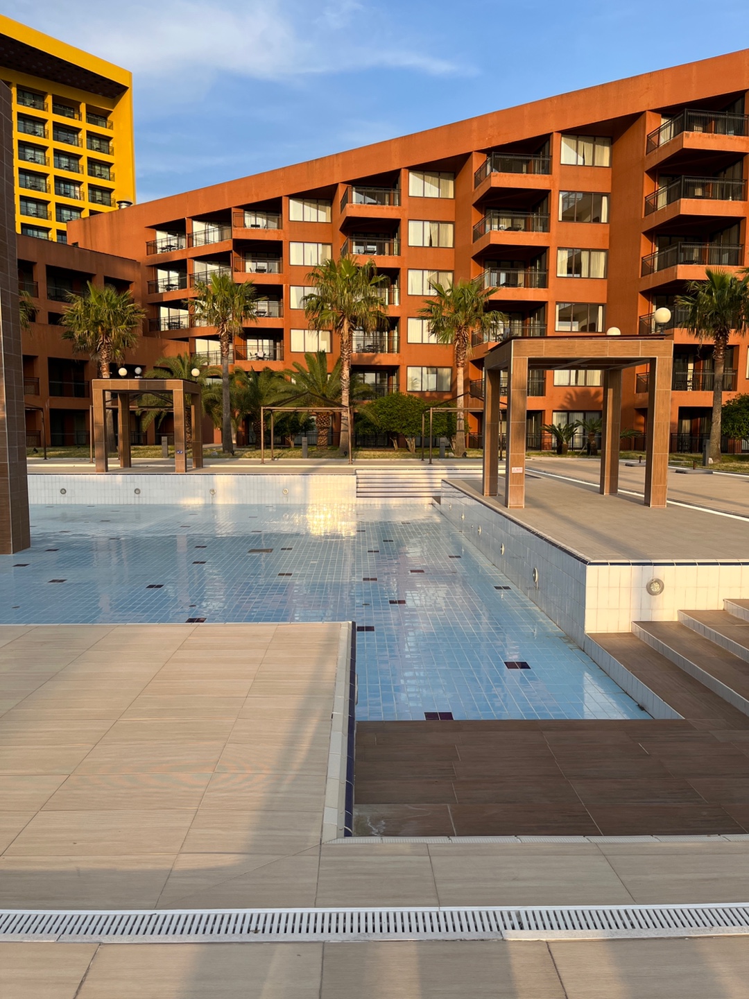 운영중인 야외수영장은 이렇게 생겼습니다. 사실 여기 오기 전부터 이 뷰 사진에 반해서 완전 기대하고 갔거든요. 기대처럼 예쁜 곳이었어요. 좀만 걸어나가면 바로 바다라 노을 보기에도 좋고 아침에 바다소리들으며 조깅하기도 좋음.