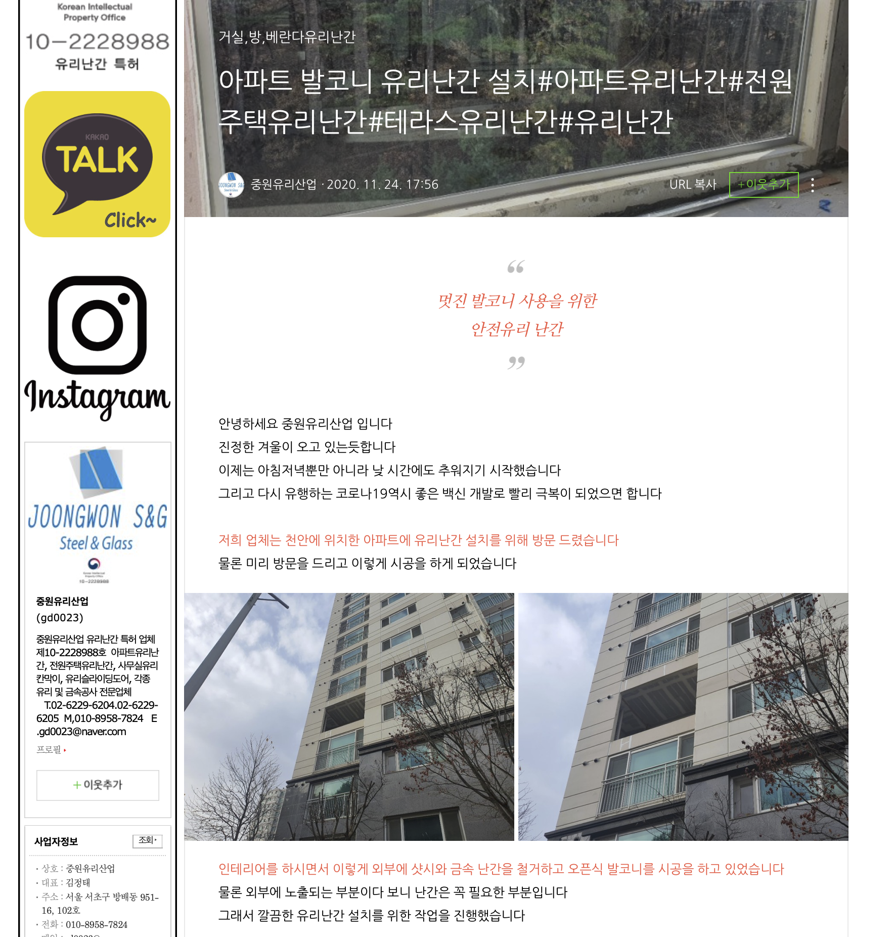출처는 유리난간 특허업체 회사 블로그인데요,(링크 : blog.naver.com/gd0023/222153340889) 사진과 함께 설명해드릴게요.
